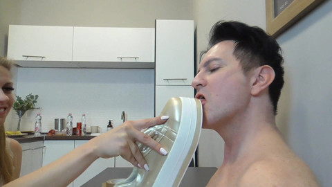 Sneaker Sniffing Mask Milking! Princess Kirstin has devised a new t method for her slave a sneaker sniffing mask! She forces one of her sweaty sneakers against his nose and orders him to sniff it. Then she tapes the shoe to his face, so that Bobby has to inhale the stench of her smelly sneaker constantly. Next, she begins to masturbate him, using the second sneaker to stroke his penis. She makes him cum with the sneaker. As soon as Bobby ejaculates, the perverted hussy milks his cum onto the sole of the sneaker. Finally, Bobby has to lick all the cum off the soles of her sneakers.
