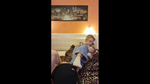 Today my feet were sweaty and tired from wearing shoes all day. He has a very sticky mouth with duct tape and has to put his nose on my sweaty socks and feet and smell them. Then he can take the duct tape off his mouth and lick my feet and wash them with his tongue.